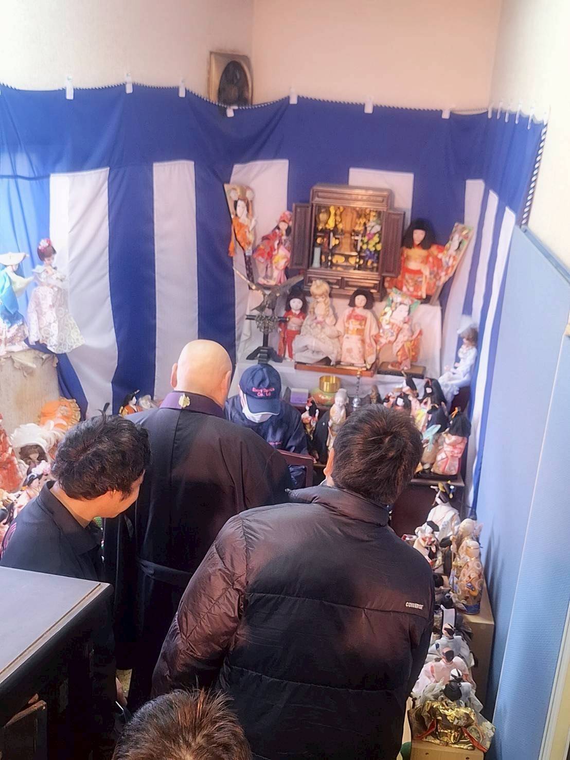 本日も沢山のお人形や想い出のある品々を飾り、供養して頂きました。少し暖かくなってきましたが、雪が降る地方も多く大阪は比較的気候に恵まれていますね。現在コロナのオミクロン株が流行ってしまっていてお坊さんも中々お客様宅へ法事など供養に出向く事も難しいようです。