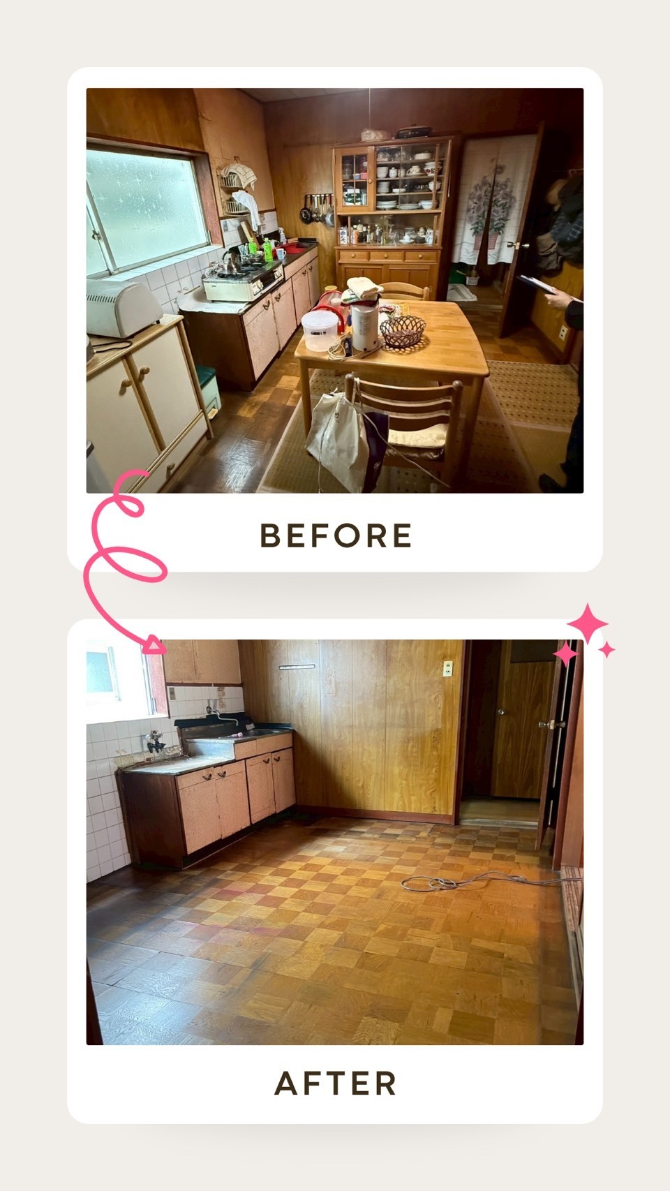 (※残置物撤去とは家の中に残ってるタンスや日用品、洋服や電化製品などの生活用品等の撤去作業)